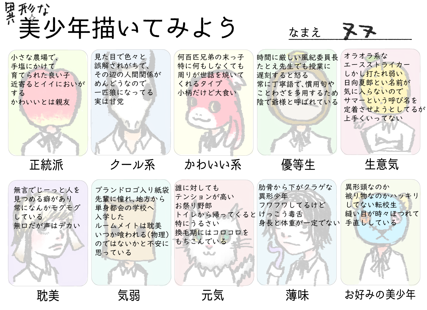 異形頭という概念(?)を知って考えたキャラクターたち。